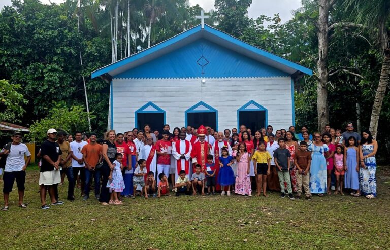 O momento foi marcado por duas ocasiões significativas: a bênção da nova igreja e a administração do sacramento da Crisma a seis jovens da comunidade, consolidando a caminhada de fé vivida pelo grupo.